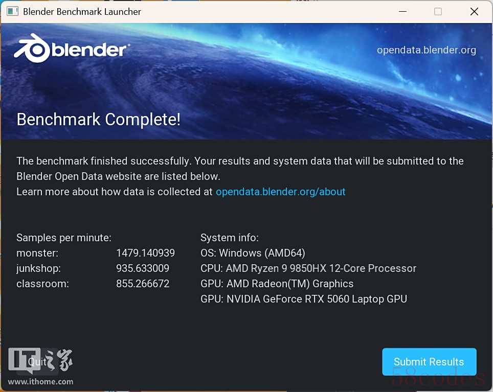在 3D 渲染性能的专业建模软件,Blender 的 4.5 版本基准测试中,MEOW R16 Ultra 的三场景的 GPU 渲染分数分别为 1479,936 和 855 分。学生群体的课业需求和上班人士的专业办公都能满足。
