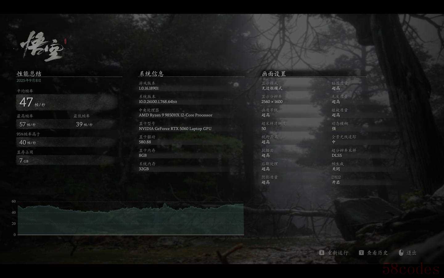 国产 3A 大作《黑神话:》适配了 DLSS4 技术,即使是偏向入门的显卡同样能有着出色的游戏体验。在超高画质 + 全景光追中档的条件下,若不开启 DLSS4 帧生成,其平均帧率为 47FPS。
