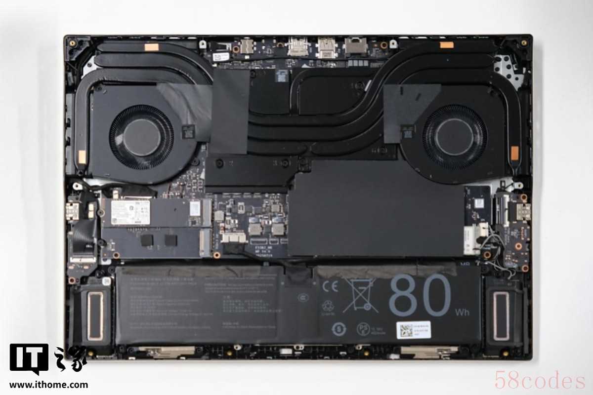 而底部则是 80Wh 容量的电池,相比 R15 标准版的 73Wh 电池来说要大一些。总体来看,内部的散热堆料还是很到位的,具体的性能释放和温度表现我们接着往下看。