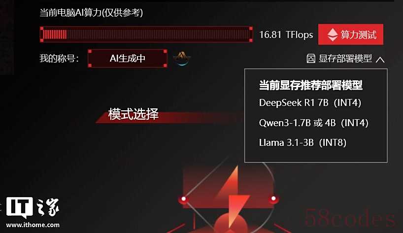 在端侧 AI 方面,COLORFIRE MEOW R16 Ultra 在自在星球应用中集成了 AI 性能测试功能,来推荐大家部署合适的模型。MEOW R16 Ultra 的 RTX 5060 版本拥有 8GB 显存,经过系统测算,软件推荐了一些参数较少的优质模型。