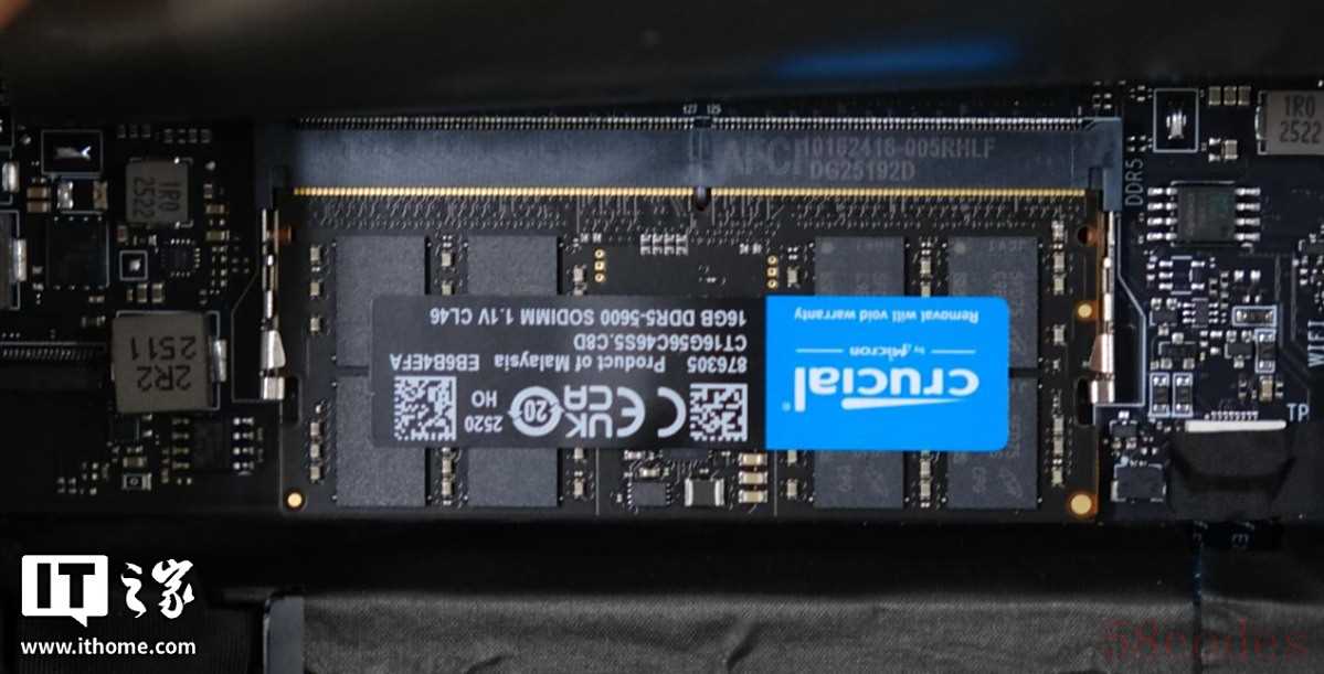 COLORFIRE MEOW R16 Ultra 拥有 2 个内存插槽,标配两条英睿达 16GB DDR5 5600MHz 内存,时序为 CL46。