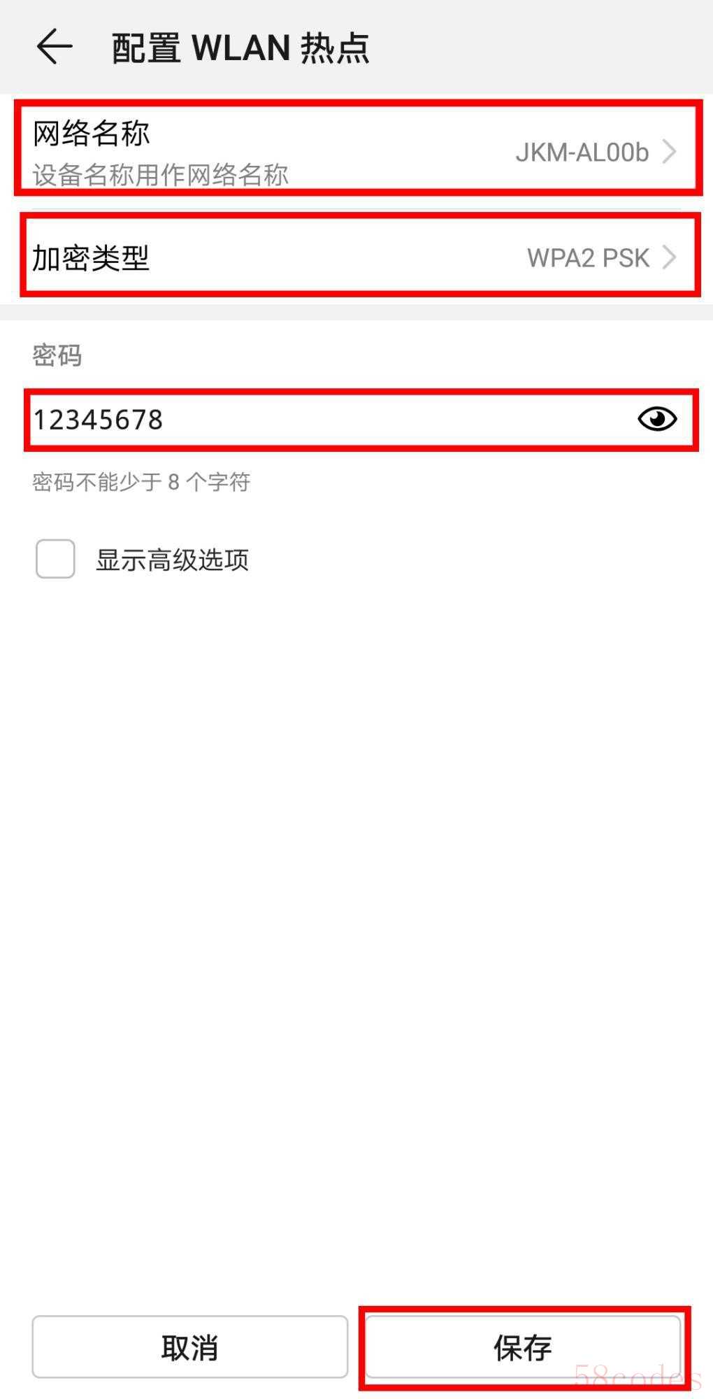 - 您可以根据需要设置热点的名称(SSID)和密码。确保密码足够复杂,以防止未经授权的访问。