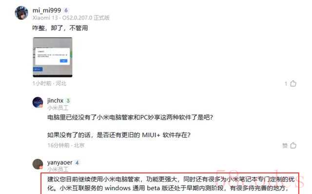 问了一圈内测群,小米员工出来明说:老用户别换新版,电脑管家才是亲儿子,功能齐全,优化深。