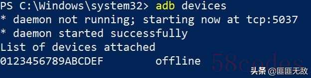 开启之后 PowerShell 或 CMD 运行 adb deivces,应该是下面这样。