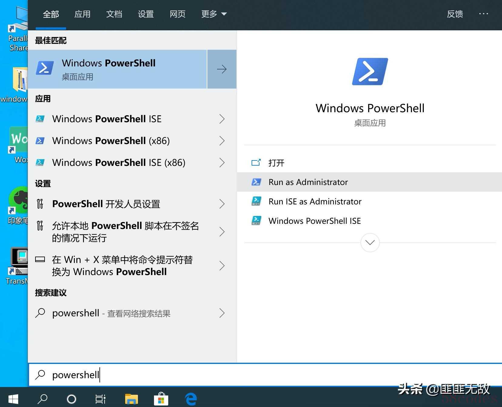 Windows 平台,首先使用管理员模式打开 PowerShell