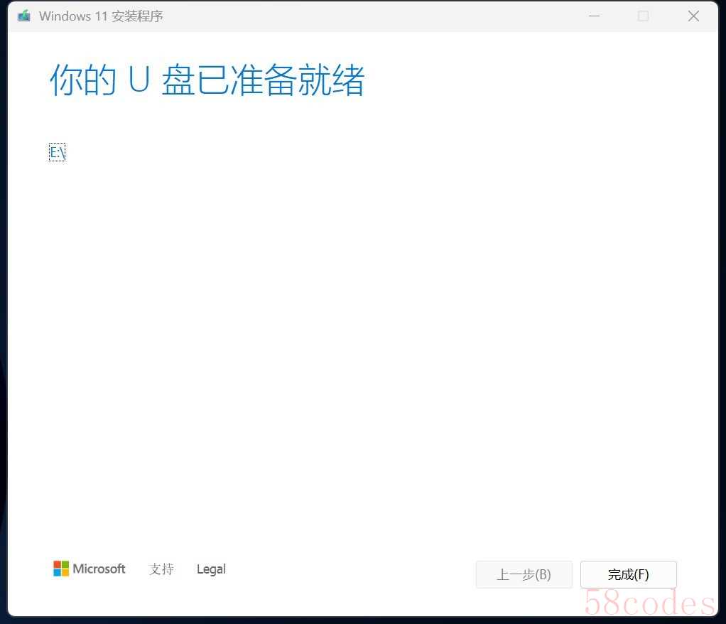 当提示U盘已经准备就绪,就说明你的Windows 11安装盘就做好了,然后点击“完成”。这个时候先不要急着拔出U盘,因为软件还需要最后一个步骤。