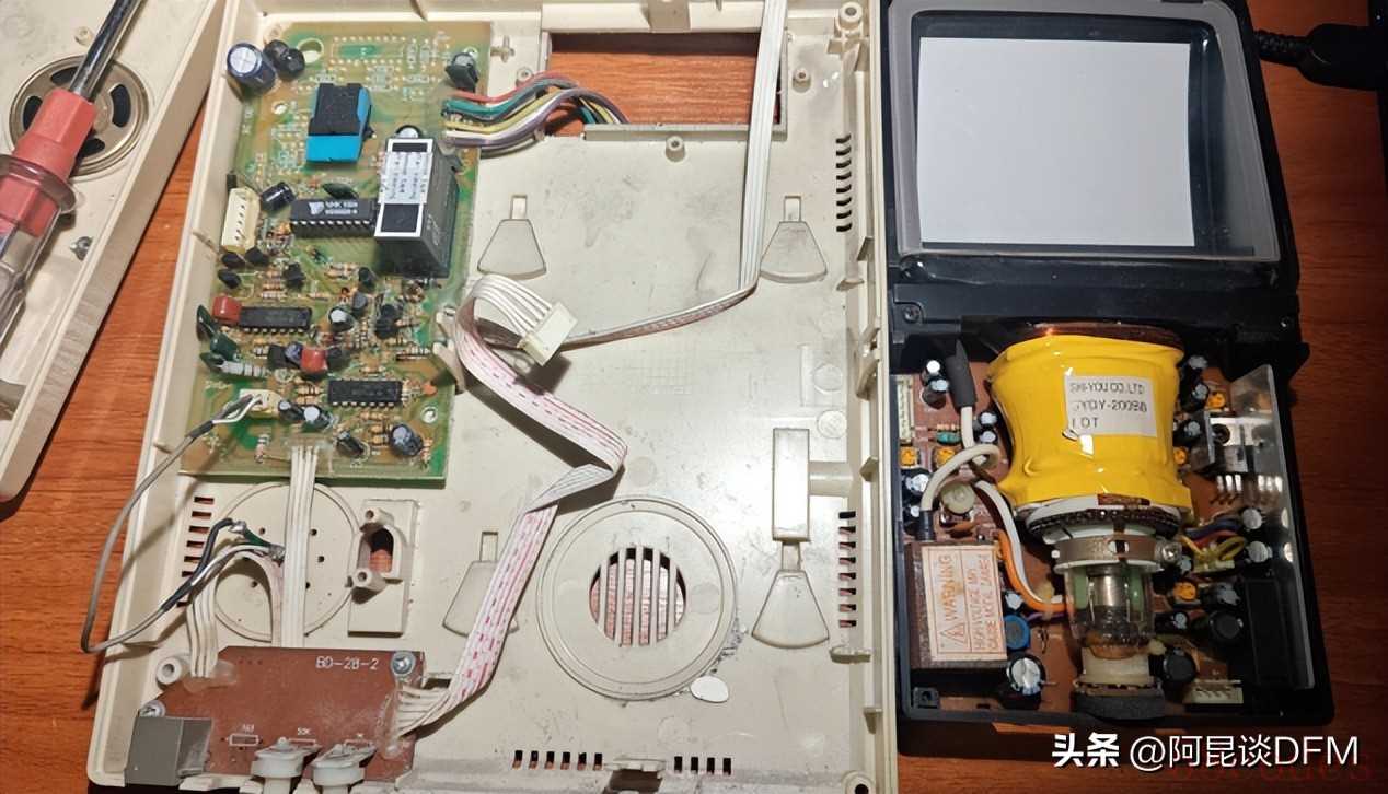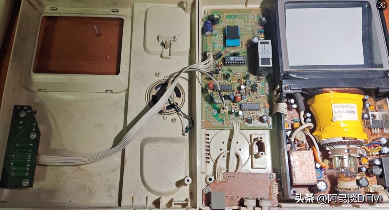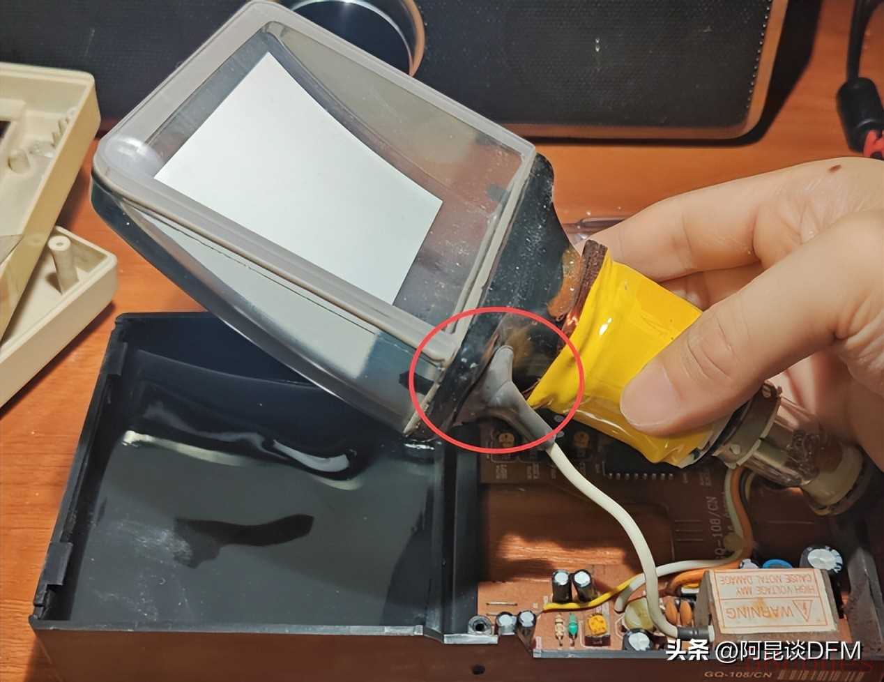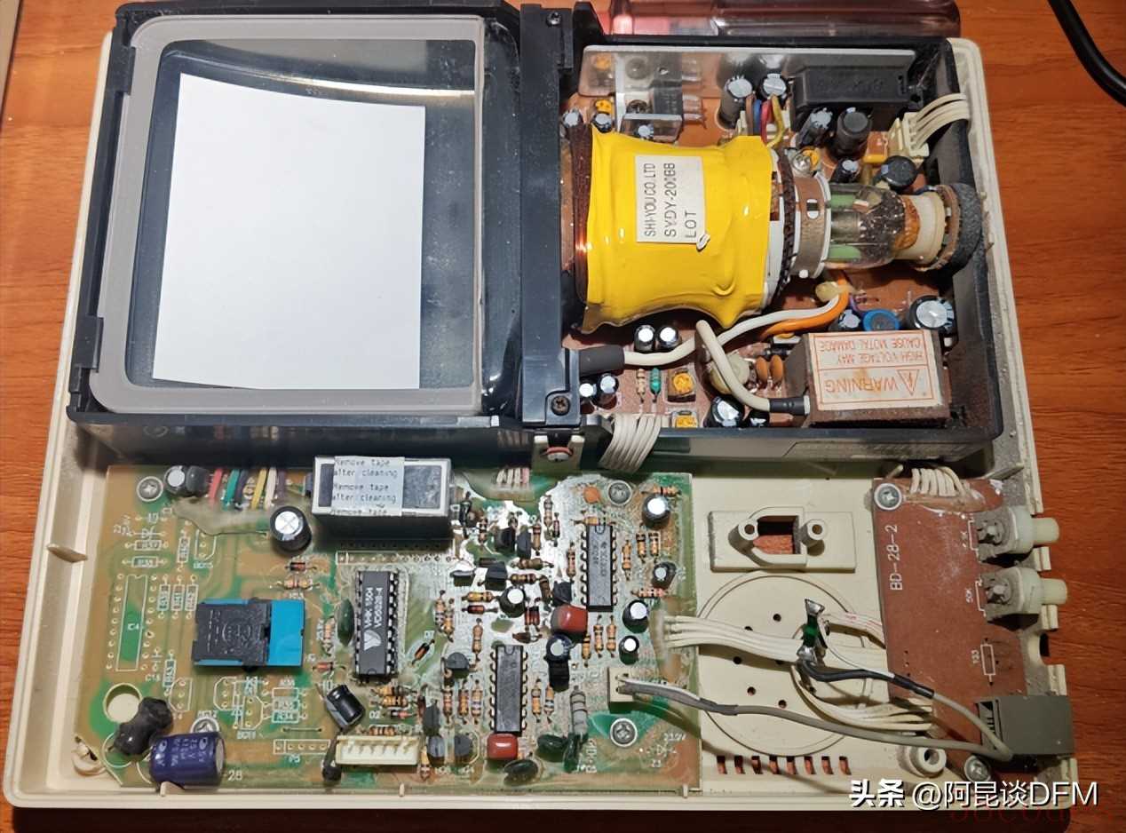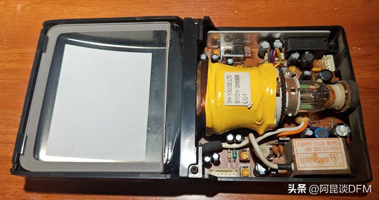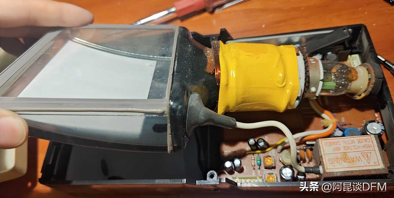 电话机整个占比最重的可以说就是这个显示部分了,其中最核心的就是这个黄色的像电子管一样的CRT显像管了。你可以理解这就是一个微型黑白电视机的显示工作原理。