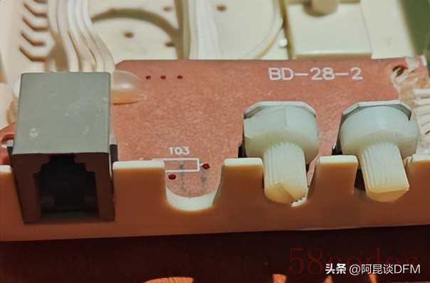 这个地方就是话咪头和电话线接头了,可以说几乎是和上次拆解的座机一模一样。