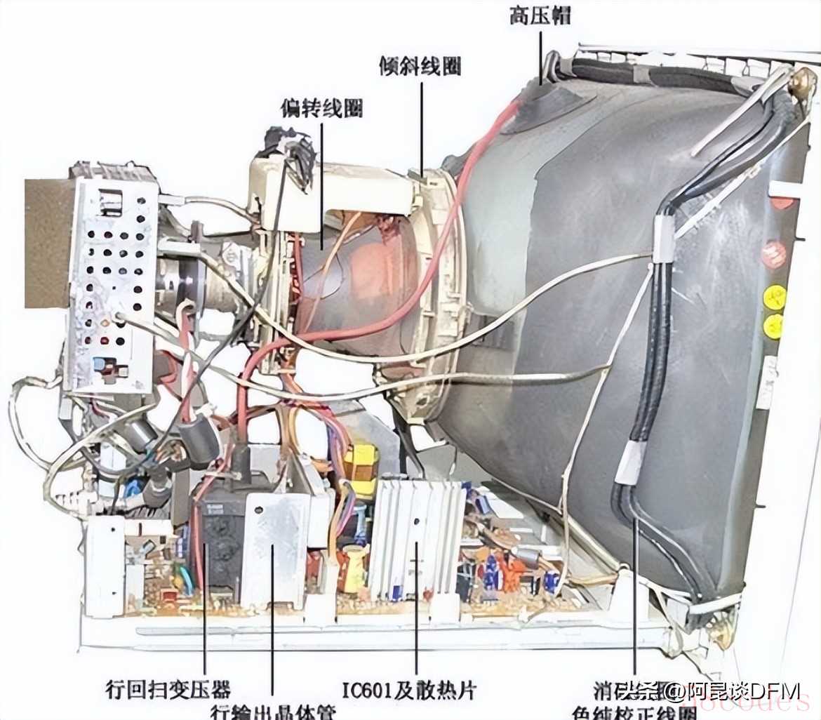 偏转线圈: 套在CRT管颈上,通过电磁场控制电子束的扫描,从而在屏幕上形成画面。