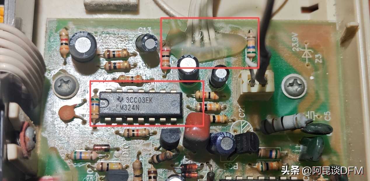 线束部分是直接焊接打胶处理,不太明白为什么不直接用排线座再打胶呢,因为电路板上其它地方又有排线座。LM324N是一个运放芯片,驱动喇叭。