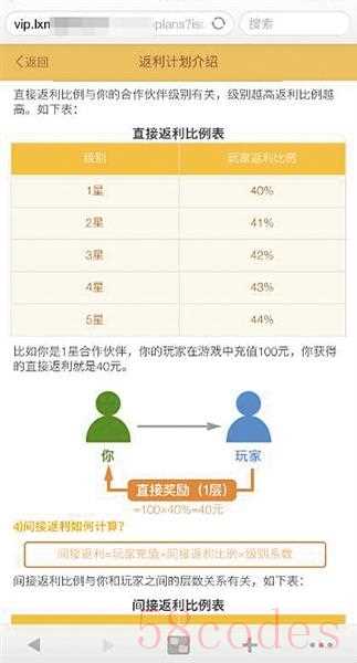 客服称,代理只需要充值300元,并且发展20名玩家后,就能享受返利。其“返利计划”介绍,代理共分为5个星级,按级别能拿到40%-44%不等的返利。也就是说,“下线”充值一百元,代理最高能拿到44元。