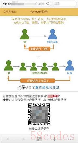 发展“下线”方法十分简单,就是通过微信二维码、朋友圈以及推荐码的方式把游戏分享给别人,对方只要完成下载,系统会自动“绑定关系”,此后,对方在平台上的每一笔充值都会给代理带来收益,这种形式称为“返利”。