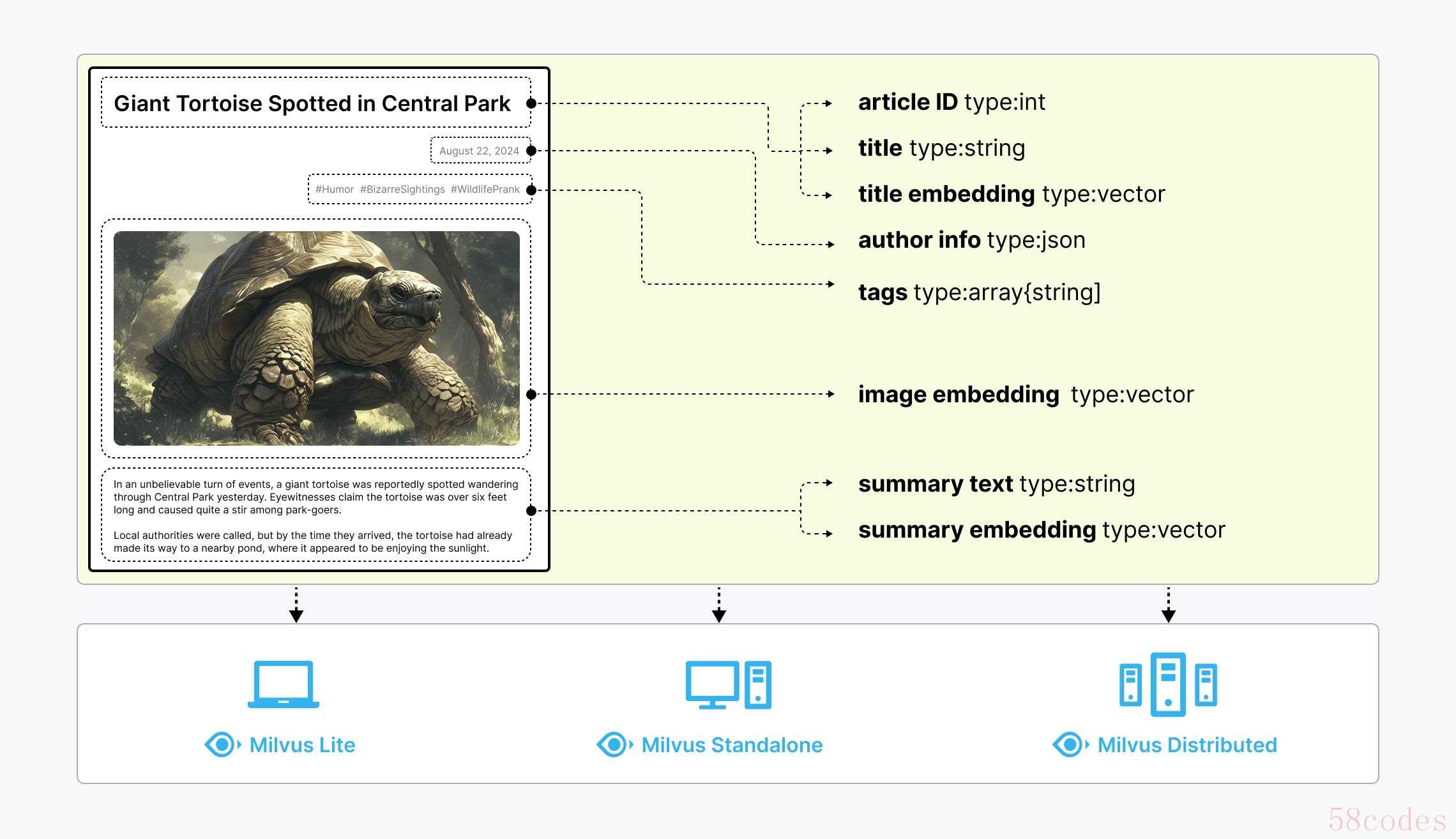 1. 支持多种数据类型:Milvus不仅支持向量数据,还支持文本、图像、音频和视频等多种非结构化数据类型,为AI应用提供了全面的数据处理能力。