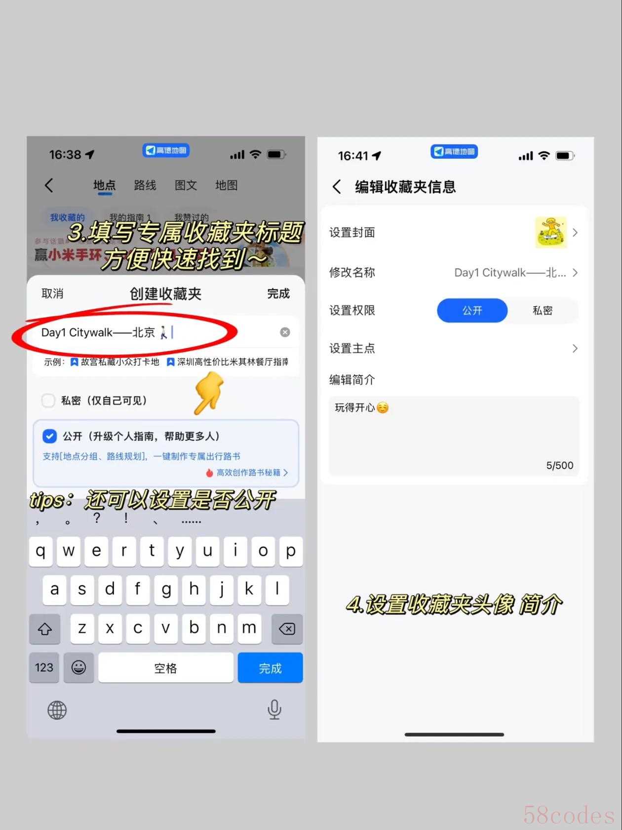 创建专属收藏夹:打开高德地图,点击“我的”,找到“收藏夹”。接着点击“创建收藏夹”,为它取个名字,比如“北京小众打卡地” ,这样你的专属地图文件就建好了。而且,你还能根据自己的需求,选择是否将这个收藏夹公开分享,要是和朋友一起规划旅行,共同创作路书,想想都很有趣。不仅如此,高德还提供了丰富多样的“主题模板”,像“主题盘点”“行程路线”“城市路书”“出行攻略”“心愿打卡”等,根据自己的旅行需求选择,比如选择“城市路书”,能让后续规划更有条理。