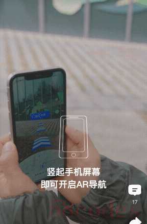 这时可以用AR实景导航的功能,只要把手机竖起,就会自动切换成实景地图,上面有箭头指示。