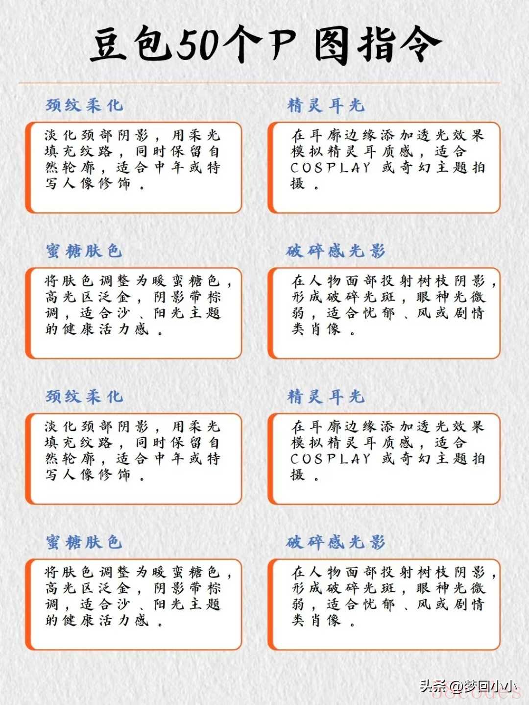 豆包 P 图小程序以其强大的 AI 绘画和图像处理能力,确实能帮你解锁颜值新高度!以下是一些常用的豆包 P 图指令(或者说思路/关键词),可以帮助你实现各种美颜和风格变换效果: