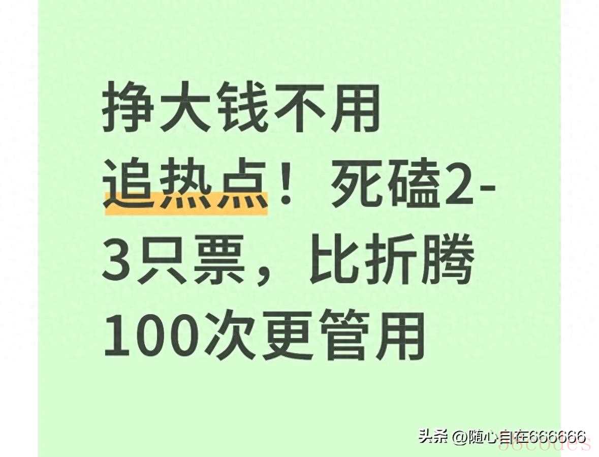 不是说热点不能追,而是对普通人来说,追热点的门槛太高——要及时获取消息、快速判断逻辑、精准把握进出时机,少一步都可能亏。但死磕2-3只票,却能避开这些麻烦,靠“熟悉”和“耐心”挣钱,核心逻辑就3个: