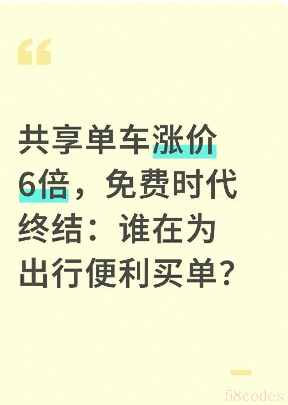 最近骑共享单车的朋友都在吐槽:“以前骑一次几毛,现在半小时3块,涨了6倍!” 咱打工人本来指着共享单车解决“最后一公里”,结果现在感觉这便利越来越贵。咱普通人就想出门方便点,怎么骑个车都成了负担?这涨价到底是行业必须,还是咱的便利被当成了赚钱的由头?
