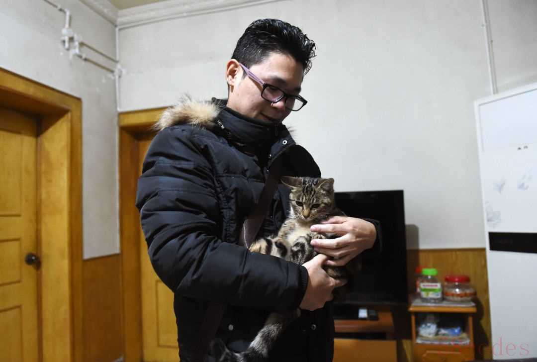 余思聪的一天常常是从清晨六点开始,要赶在上班早高峰到来前到岗,余思聪收养的三个月大的流浪猫和他恋恋不舍。