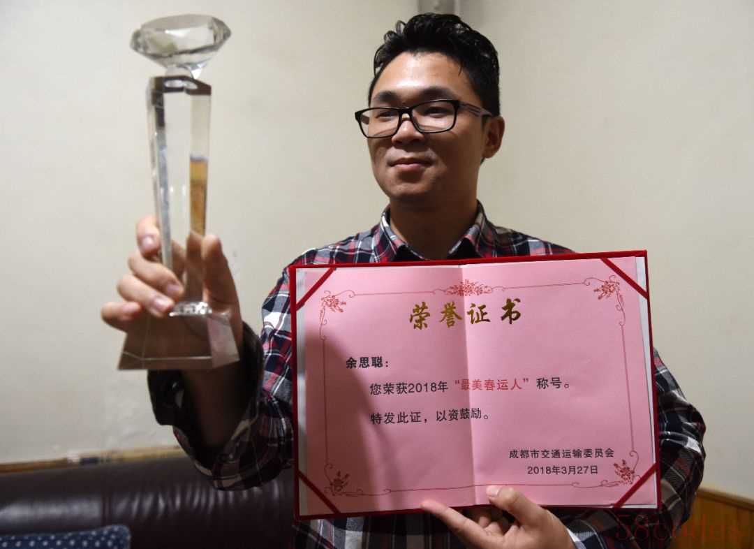 余思聪是青桔单车在成都的一名路面运维人员,今年2月以来,他连续三个假期都没有休息,在成都市交委联合封面新闻举办的最美春运人评选中,获评成都十佳“最美春运人”。