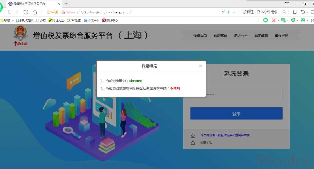 问题2:登录当前浏览器加载税务安全证书应用客户端:不成功。如下图
