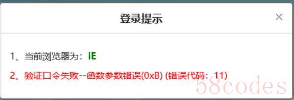 问题4:登录平台提示【验证口令失败-函数参数错误(0xB)(错误代码:11)】