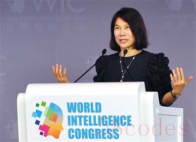 6月30日,首届世界智能大会上,格力董事长兼总裁董明珠作演讲。图/视觉中国