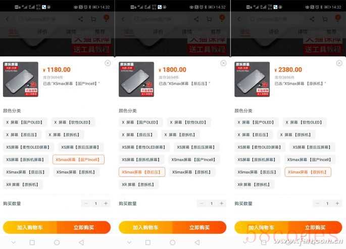 以iPhone手机为例,在淘宝上就主要以“国产屏”、“原后压”和“原拆机”3种总成屏为主。