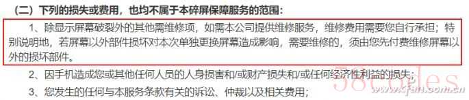 此外,碎屏险服务期内不针对除屏幕以外的部件进行保障,若手机造成非屏幕组件相关的其它功能性损坏,则由用户自行承担功能性修复的相关费用。