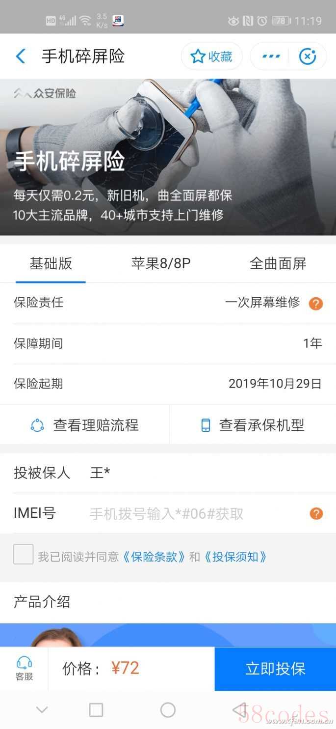以支付宝平台的“众安手机保险”为例,根据不同型号的手机,1年期的碎屏险价格存在72元、142元和182元三个档位。