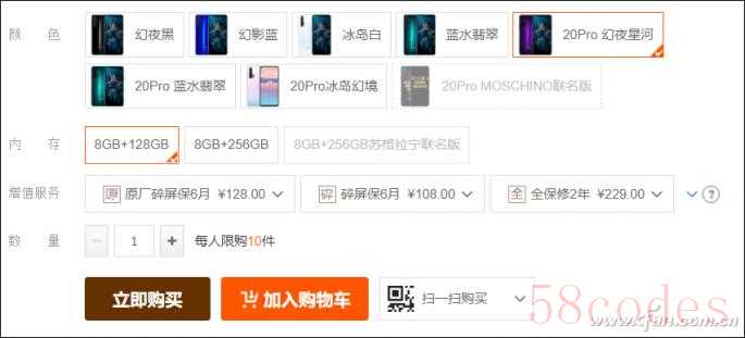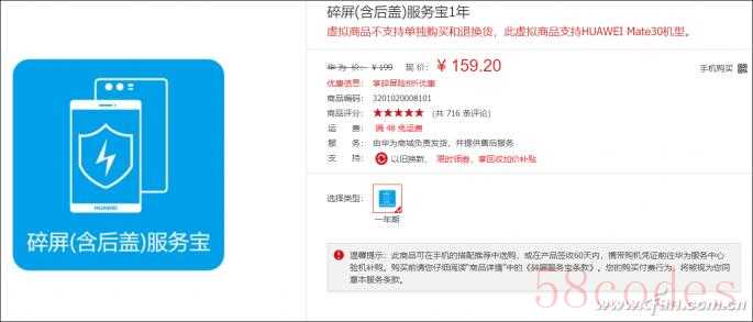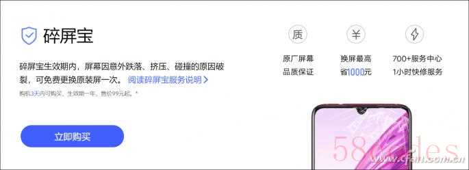 华为/荣耀旗下的部分型号手机没有单独的碎屏险,只能购买费用略高的“碎屏(含后盖)服务宝”。