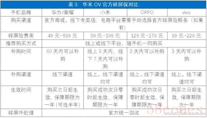 但是,如果你没能随手机一同在线上/线下平台购买官方碎屏险,想要临时补购时就要受到手机激活时间(手机开机联网即视为激活)的限制了(表3)。