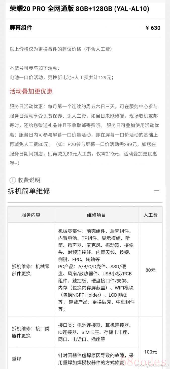 华为/荣耀手机的换屏成本构成与小米相似,而且人工费用更是高达80元,但该品牌在每月第一个连续的周五六日3天可提供免人工费的“服务日”活动,趁着这个时间段维修手机可降低支付成本。