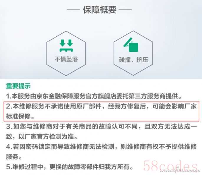 其中,普通碎屏保是由京东金融保障服务官方旗舰店委托第三方服务商提供维修,不承诺使用原装屏幕,而且换屏后还会影响手机日后正常的官方保修服务;