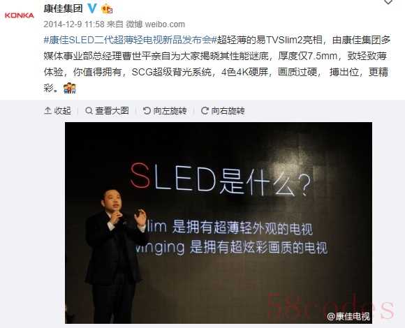 SLED是康佳与LG Display联合基于IPS硬屏设计的,“S”的意思是Slim(超薄)和Swinging(炫彩),也就是主打超薄和绚丽画面。