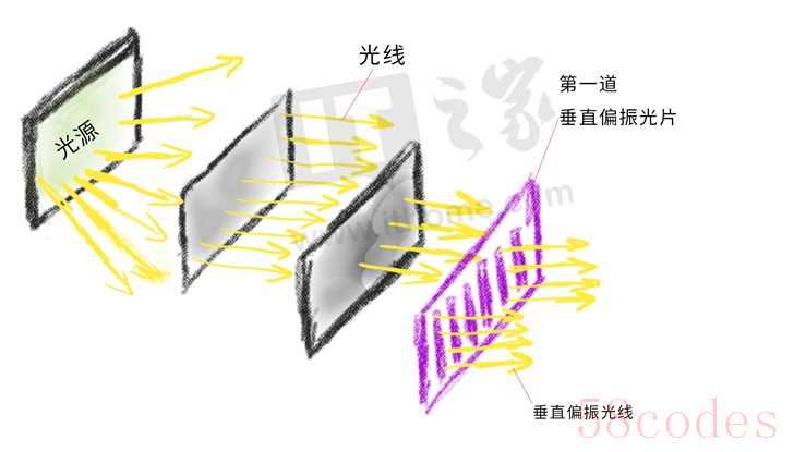 然后水平偏振光能够顺利通过第二道水平方向的偏振片,就成了我们看到的白光。