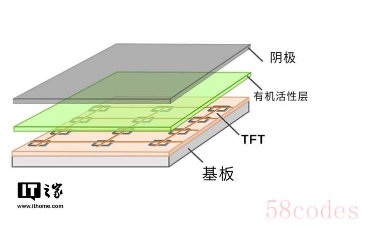 另一个是AMOLED,每个像素配备带有开关的TFT(薄膜晶体管)。我们智能手机、电视屏幕用的基本都是AMOLED面板。