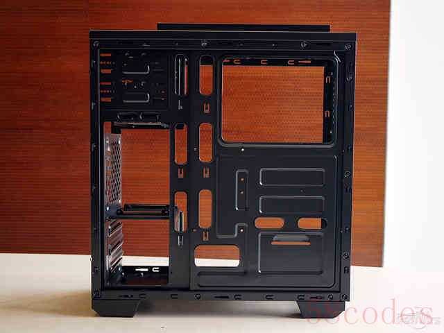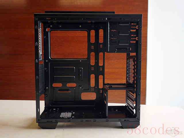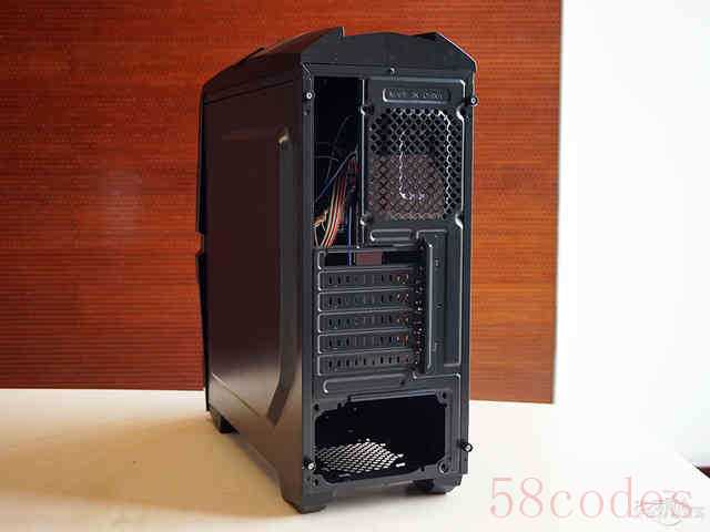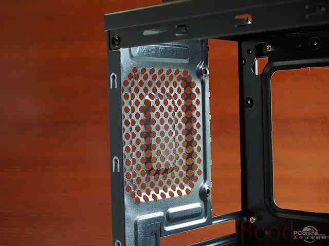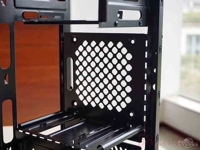 机箱的侧板同样采用了易于拆卸的网孔设计,方便热空气快速排出。后窗则
