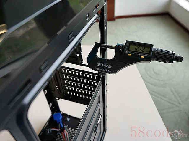 对航嘉 暗夜猎手Ⅱ机箱主板托板和侧板进行厚度测试,数据结果显示,机箱主板托板厚度为0.522mm,侧板厚度为0.515mm。主托板和侧板厚度皆为中等,足以能够保护机箱内部设施,且有效地防止电磁辐射外泄。