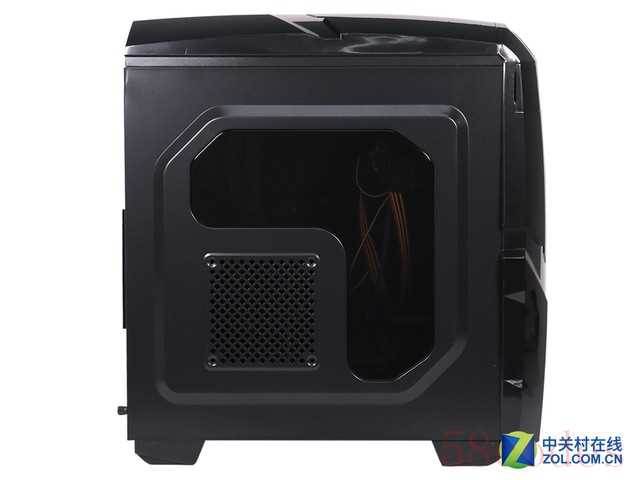 航嘉 暗夜猎手II机箱在侧板设计上并没有采用全透设计,而是别出心裁的在侧板上增加了一个机箱风扇安装位,且也保留了一部分侧透的设计,可谓是侧透散热两不误,一举两得的设计值得称赞。