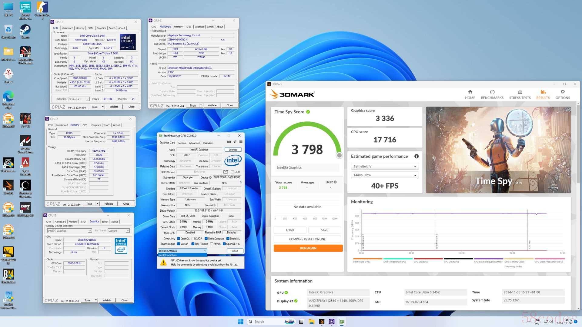 在标准频率下,245K 上的 iGPU 在 3DMark Time Spy 图形测试中大约能达到 2100-2200 分,但最近一位超频玩家“Arabus”将核显频率超频至惊人的 3.0 GHz,提高了 1.1GHz。