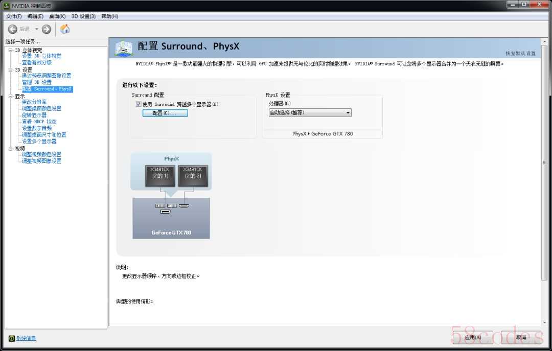 选择组建Surround显示器的模式,用PBP来实现的话,直接用默认值就好