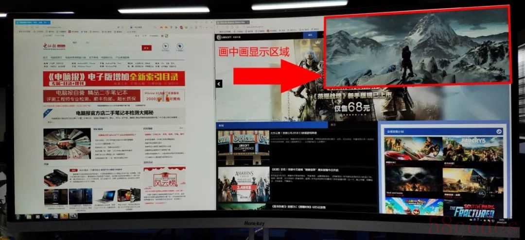 现在不少大屏幕显示器都提供了PBP/PIP(画外画/画中画,在一台显示器上同时显示多个信号源的画面)功能,而大多数时候这些功能都是闲置的,其实我们可以把这些功能用起来,玩出一些有趣又实用的效果来。