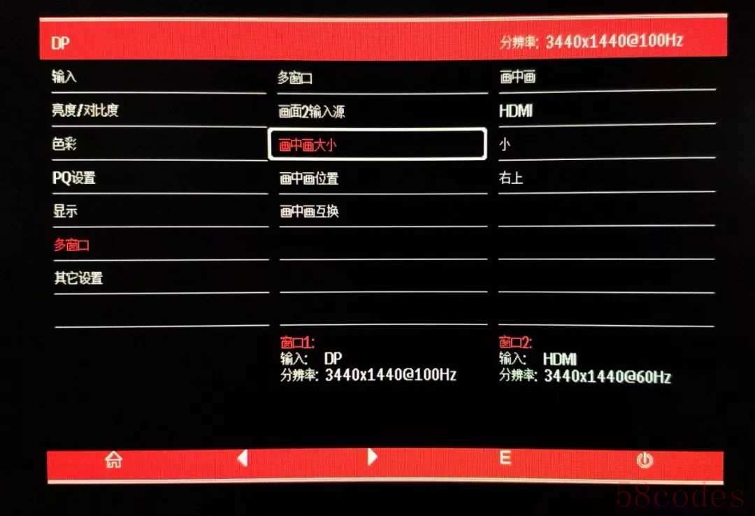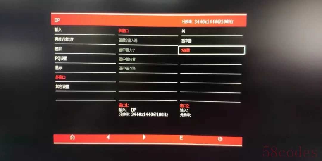 "PBP(Picture in Picture)":PBP通常将主画面和次要画面并排显示,形成分屏效果。您可以根据需要调整两个画面的比例,例如1:1分屏或4:3分屏等。
