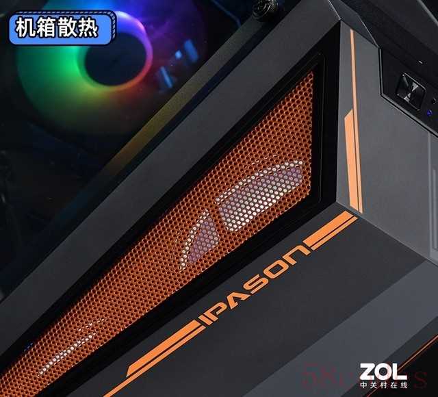 机箱散热空位位于攀升战境S5主机正面两侧,正面风道为进风口。