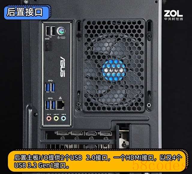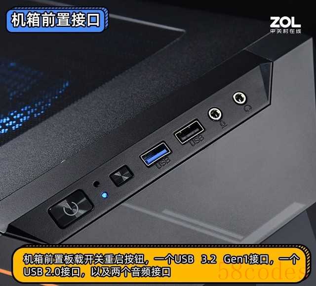 接口方面,前置总共有2个USB接口,和麦克风输入输出接口,一般主机前置接口不接键鼠等设备,作为U盘等传输工具的接口更方面。其中一个接口恰好也是USB 3.2 Gen1(原USB 3.0),速度不用担心。