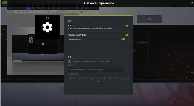 接下来去NVIDIA 显卡驱动自带的GeForce Experience程序中开启《永劫无间》的亮点功能,在开启前可以更改NVIDIA Highlights亮点保存位置。
