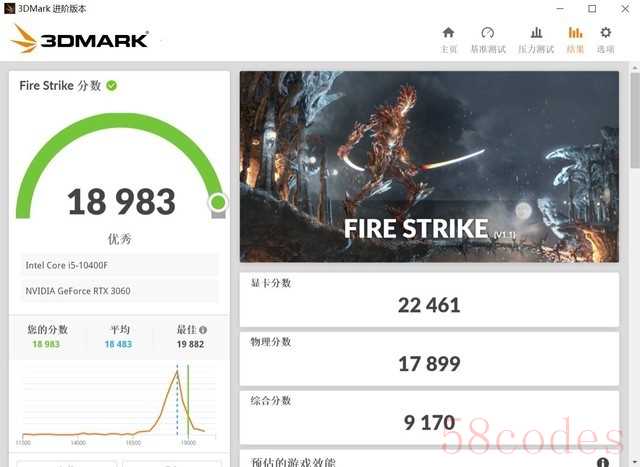 3D MARK测试可以发现,这台主机不管是Fire Strike还是Time Spy都超过了平均水平,酷睿i5-10400F和RTX 3060显卡搭配非常出色。