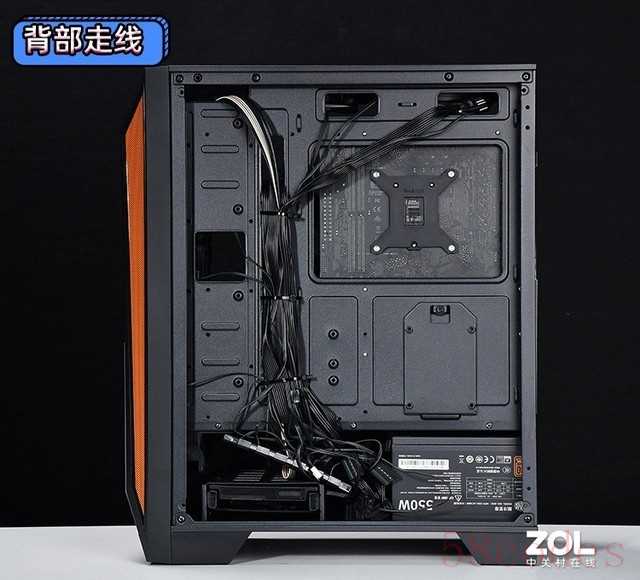 攀升也整合了背部走线,线材用扎带整理好,干净整洁,同时可以看到背部还有一个SATA盘的空位,这台主机本身只有一个M.2固态,觉得不够用的可以在这里拓展一个大容量SATA或者机械硬盘。