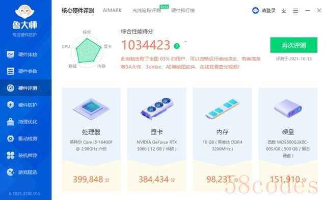 这台主机鲁大师跑分可以达到100W,鲁大师界面显示击败了全国83%的用户,畅玩3A,进行一般的内容创作没问题。